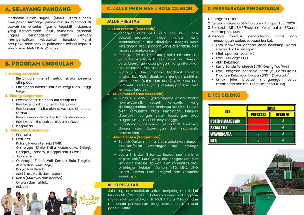 PMBM Jalur Reguler Terpadu dan Reguler Mandiri MAN 1 Kota Cilegon TP 2026/2027 MAN 1…