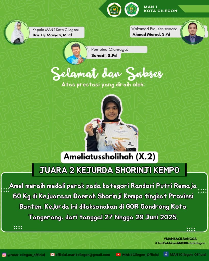 Keberhasilan Ameliatussholihah menjadi bukti nyata bahwa kerja keras dan dedikasi dalam latihan tidak pernah mengkhianati hasil. Prestasi ini menjadi inspirasi bagi rekan-rekannya di madrasah, sekaligus menegaskan bahwa siswi madrasah mampu bersaing dan berprestasi di tingkat provinsi dalam cabang olahraga bela diri yang penuh tantangan ini.