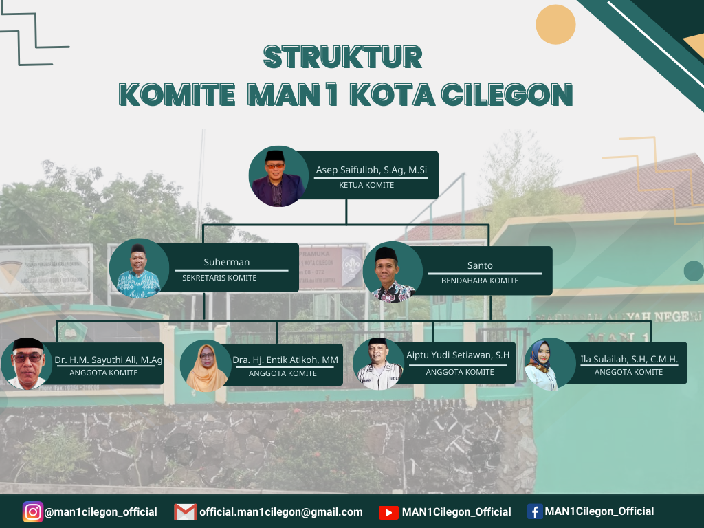 MAN 1 Kota Cilegon JL. IR. SUTAMI KM.2,5, Lebakdenok, Kec. Citangkil, Kota Cilegon Prov. Banten Telpon : 0254-3110086/081294183865Email : man1cilegon@gmail.com